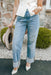 Meet the city in style with the Eastside Loose Cuff Jeans. These high-rise jeans feature a 12" rise and a 29" inseam with rolled cuffs and authentic distressing for a distinctive look. Crafted from Tough Love fabric—a blend of 65% cotton, 34% organic cotton, and 1% elastane—they maintain shape while comfortably adapting to your body. The 18 ½" leg opening offers a relaxed fit, perfect for all-day wear. Machine washable cold, these jeans combine durability with eco-conscious care.
