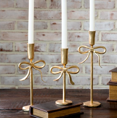 Elevate your table settings with these sophisticated gold bow candle holders. Crafted with meticulous attention to detail, each piece features an e...