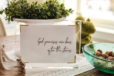 Display your faith with this elegant 6x8 acrylic frame featuring a golden yellow design and an uplifting message about God's promises. The durable ...