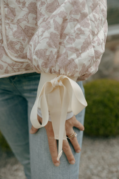 Floral Quilted Jacket With Bow Tie Ribbon Detail