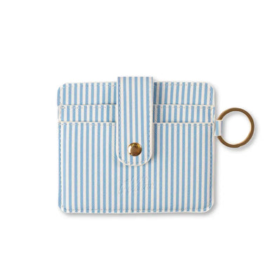 The Blue Stripes Card Wallet combines minimalist design with practical functionality. This compact, no-fold wallet features secure snap-lock card s...